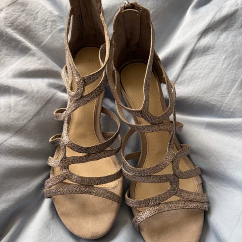 Fine sandaler med høy hæler str 39 i ekte skin. Pent brukte til et par bryllup.