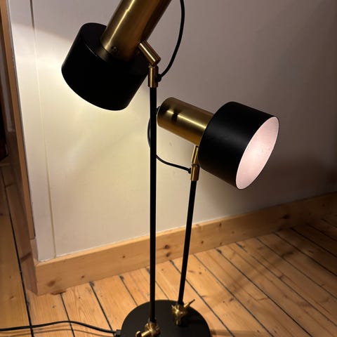 To flotte svarte og gullfargede stålamper selges, de er pent brukte. Pærer må byttes ut.