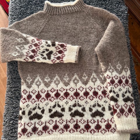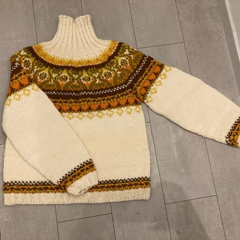 Hjemmestrikket og ubrukt Potegenser /Villmarksgenser strikket i Drops Nepal i str M selges billig da den har en liten skjønnhetsfeil på ene ermet, ikke sikkert det synes hvis man ikke vet om det. Se ene bildet.