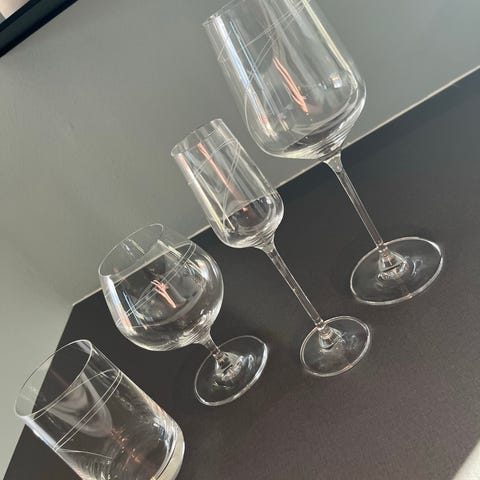 16 stk Rosendahl Grand Cru kaffeglass. Disse har blitt vasket på over 55° i oppvaskmaskinen og har derfor fått «tåke»-kant. Se bilde.