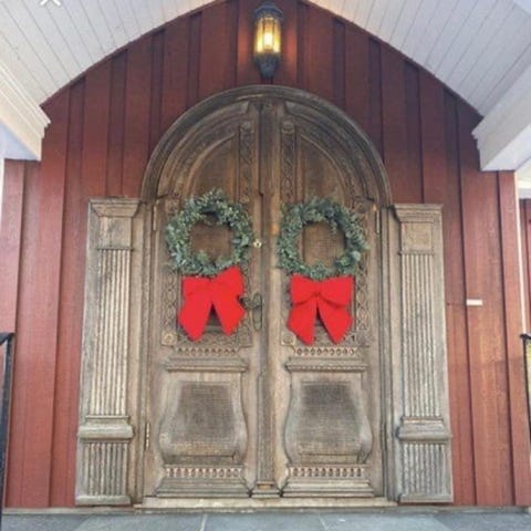 Eiketre dør er i godt stand . Dør i mitn og glas i begge side .