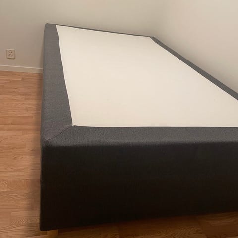 Kontinentalseng 120x200 cm. 1 vendbar madrass med bonell-fjærer 110/m² polstret med polyeterskum. 1 overmadrass, 4 cm tykk overmadrass med polyeterskumkjerne. Vaskbart trekk med tykk quilting. Nederst en ramme. Inkl. ben