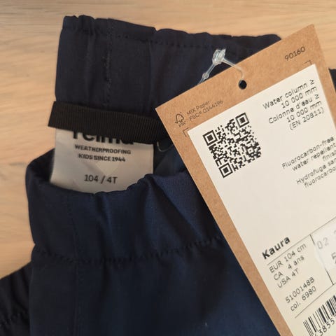 En helt ny mellomsesong-bukse med smale bukseben i str 104 cm, 4 år - perfekt til aktive dager utendørs. Den pustende og fullstendig vann- og vindtette allværsbuksen er i slitesterkt materiale som sørger for god komfort, selv under langvarige uteaktiviteter. Alle sømmene er teipet vanntette, og ekstra slitesterke forsterkningslapper på knærne sikrer god holdbarhet.