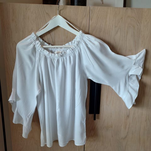 Donna bluse for dame i størrelse m. Blusen er hvit og laget i polyester. Den har rund hals og volangdetaljer langs ermene. Passer til bruk både til hverdags og mer formelle anledninger, og kan kombineres med ulike underdeler som bukser eller skjørt. Hengt i skapet, da den ble kjøpt for liten, jeg sender mot porto,