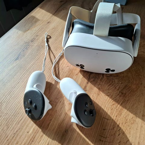 Fungerer som den skal og er i god stand. Enkel å bruke – bare sett headsetet og kontrollerne på plass så lader de automatisk.