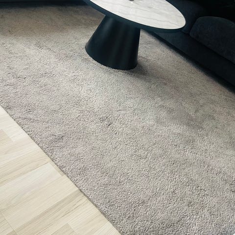 I Lavfloss teppe i størrelse 160x230 cm i hvit farge. Teppe med lang, myk lugg som egner seg godt i stue eller andre oppholdsrom. Rektangulær form som passer under sofabord eller sittegruppe.Kommer fra et dyre- og røykfritt hjem.