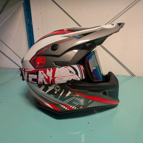 LS2 Explorer helhjelm.Hjelmen har integrert visir og skjerm, med ventilasjonsåpninger på toppen og bak. Innvendig polstring og hakeparti gir omsluttende passform. Brukt av 16 år gammel jente i ca 2 år. Aldri vært utsatt for skade eller ulykke