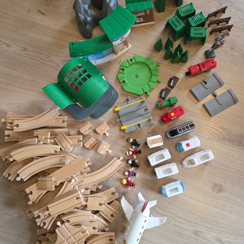 Diverse deler fra BRIO til togbane.