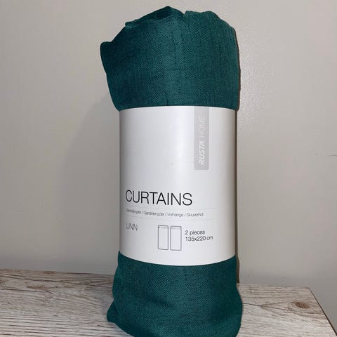 Rusta gardiner med blomsterprint. Gardinene har et flerfarget blomstermønster på lys bunnfarge og er egnet for bruk i stue eller andre oppholdsrom. Passer til montering på gardinstang med rynkebånd eller løpegang, avhengig av søm. Tekstiltype og nøyaktige mål er ikke oppgitt, men lengden dekker standard vindu og verandadør, som vist på bildene.