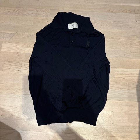 Selger en stilren genser fra AMI Paris (Alexandre Mattiussi) i en fin lys blå farge med den klassiske Ami de Coeur-hjertelogoen på brystet.