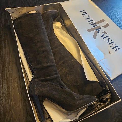 Selger pent brukt Stuart Weitzman støvletter i str 35, farge grå. Brukt men mye bruk igjen.