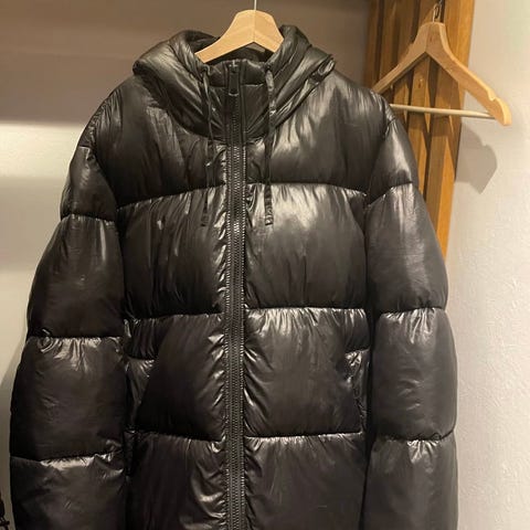 H&M vinterjakke for dame i størrelse XS. Jakken er svart. Modellen er en vattert jakke med hette og glidelåslukking foran. Den har horisontale sømmer som gir et pufferpreg og sidelommer. Egnet som ytterjakke i kaldere vær.