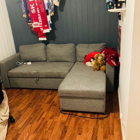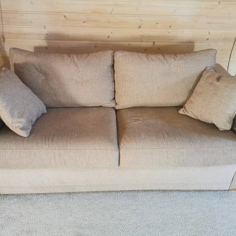 Selger en lite brukt sovesofa da den ikke blir brukt lengre. Den har stått tidligere i stue nr. 2 og deretter blitt plassert på gjesterom/ lagrings rom. Jeg har brukt interiør rensemaskin på denne da den ble flyttet på sist.