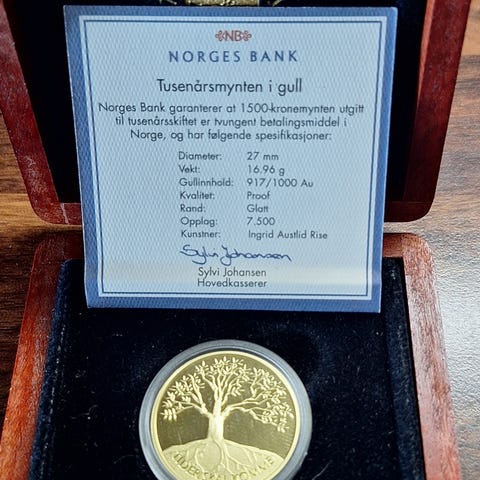 Proof gullmynt, 100-årsmynt nr. 1, som representerer Norges Landbruk.
