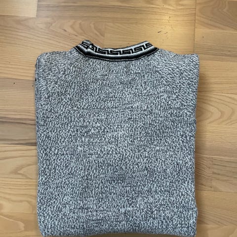 ✨ ALPAKKA ULL i størrelse L. Genseren er grå med hvitt mønster og figurmotiv rundt bærestykket. Strikket i alpakkaullblanding som gir et mykt og lunt plagg. Passer til dame og kan brukes til hverdags eller som varm genser på kjølige dager.