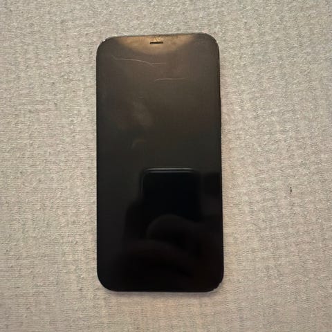 Telefonen har en 6,1-tommers skjerm med flat front og to kameraer på baksiden. Modellen støtter Face ID, trådløs lading og lading via Lightning-port. I esken følger det med original emballasje og ladekabel/lader slik som vises på bildene.