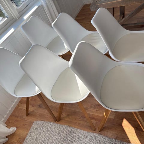 Selger Kastrup spisestoler kjøpt hos Jysk. Stolene har noen bruksmerker etter normal bruk, men er fortsatt solide og har mye bruk igjen.