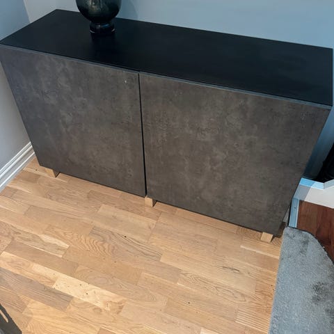 Burton skap og kommode fra Bohus selges samlet. Sort eikefiner med understell i svartmalt metall. Kjøpt for ca 2200 pr møbel i 2019. Vært i røykfritt hjem.