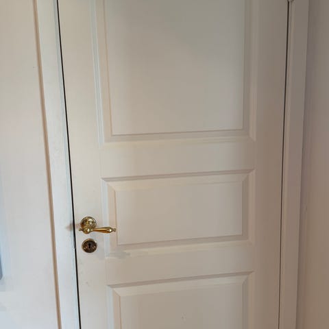 Harmoni Ask lett innerdør i størrelse 90 x 210 cm. Døren er hvitmalt (NCS S 0502-Y) og har tett dørblad uten glassfelt. Klassisk profilert design med flere speil. Leveres som standard innerdør egnet for bruk innendørs i bolig eller tilsvarende miljøer. Kun dørblad