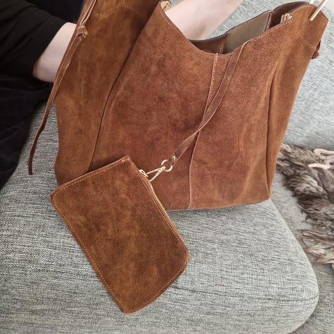 Håndveske i semsket skinn