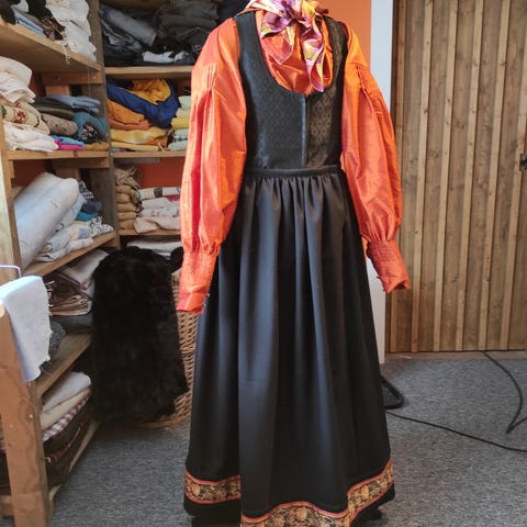 Drakt kjøpt ny med kun skjorte, forkle,belte er 7000kr.