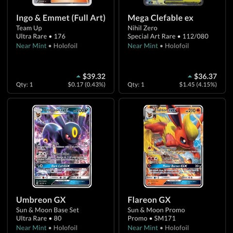 Jeg har brukt en app kaldt rare candy, den finner pokemon kortene gjennomsnittlige sum av hva de har blitt selg for.