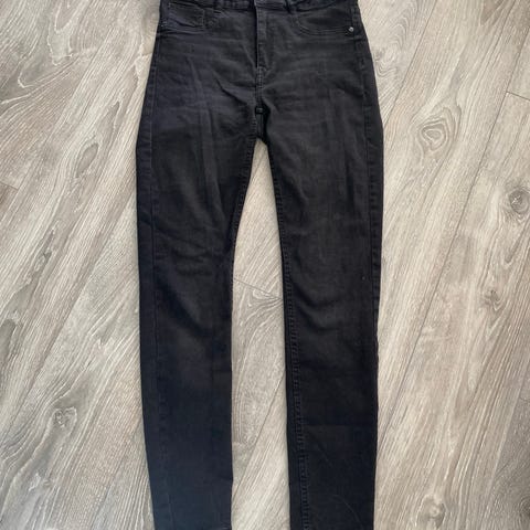 Calvin Klein Jeans damebukse i svart denim. Buksen har livvidde W29 og tilsvarer ca. størrelse M. Klassisk 5-lommers modell med beltehemper og glidelås med knapp i front. Baklommer med enkel sømdetalj og liten logoetikett. Passer til hverdagsbruk og kan kombineres med ulike topper og sko for et enkelt, nøytralt uttrykk.