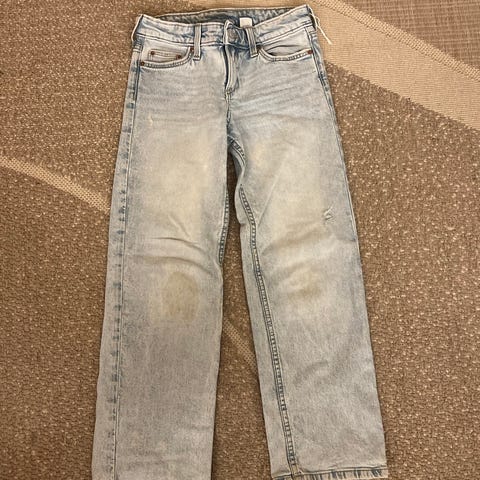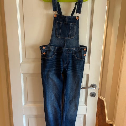 H&M denim selebukse for jente i størrelse 134. Buksen er i blå denim med justerbare seler og lomme på brystet. Den har sidelommer og baklommer, samt knepping i sidene. Passer til hverdagsbruk for barn i størrelse 134.