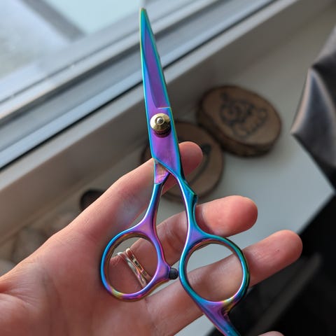 Awalea Hårsax frisørsaks i rustfritt stål med svart håndtak og håndslipt blad. Saksen er for klipping av hår, og har ergonomisk grep med fingerstøtte for bedre kontroll under bruk. Passer til generell hårklipp og vedlikehold hjemme. Brukt en gang og er vasket.