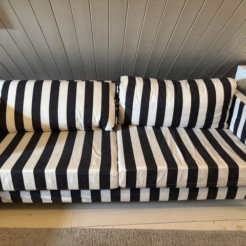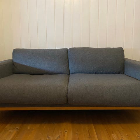 Svært pent og lite brukt. Ekstra trekk farge beige følger med. Pynteputer følger ikke med.