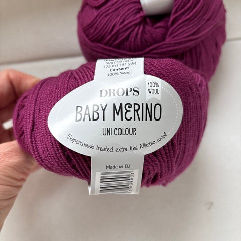 Drops Merino Extra Fine. Se fargeparti på bilde. Obs: katt i hus men de er holdt unna garn. Hår kan likevel forekomme.