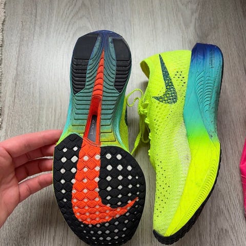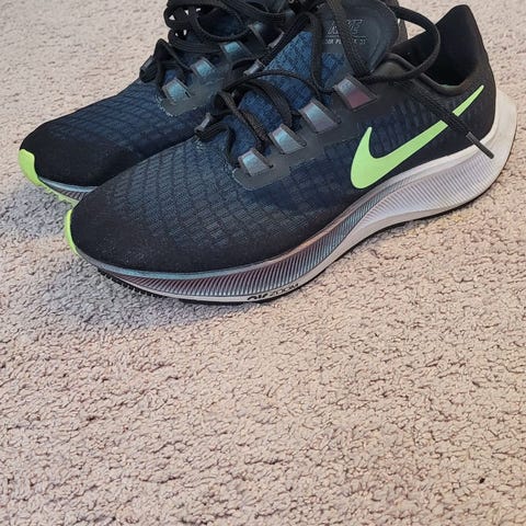 Nike trail løpesko i størrelse 39. Flerfarget design med kombinasjon av grønn, brun og oransje. Egnet til løping og annen aktivitet utendørs på ulendt terreng.