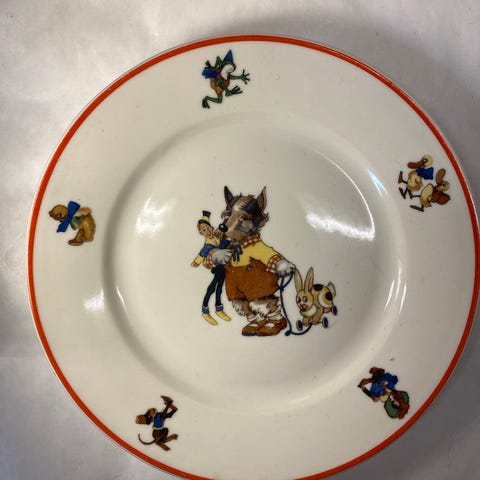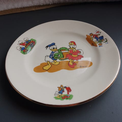 Liten Disney asjett fra Stavanger flint, 13 cm i diameter. Har en skade på baksiden, se bildet.