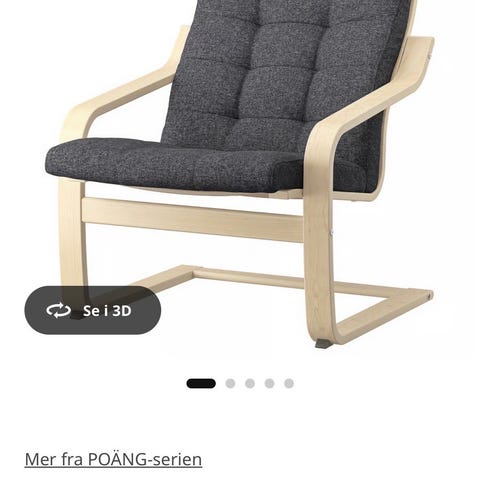 Fra IKEA: POÄNG lenestol har stilige buede linjer i bøyd tre, noe som gir fin støtte for nakken og komfortabel smidighet. Den har vært i sortimentet vårt i flere tiår og er fortsatt like populær. Lyst til å prøve den?