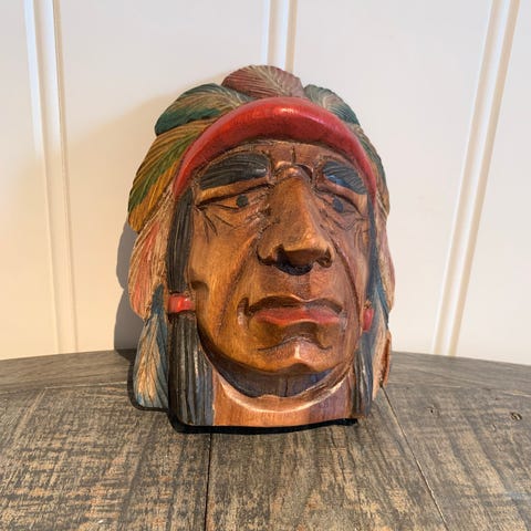 Stor utskåret trefigur / veggdekor i heltre