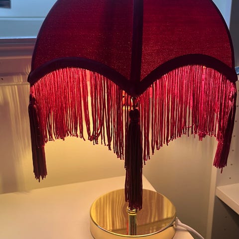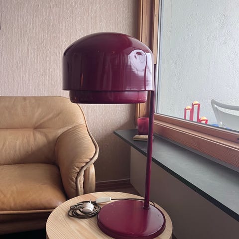 Flott bordlampe fra HAY i mørk rød selges billig for 1200,-. Designet av Inga Sempé. Som ny. Omtrent ikke brukt. Tilkobling: støpsel. Innebygd dimmerfunksjon. Ø:38.