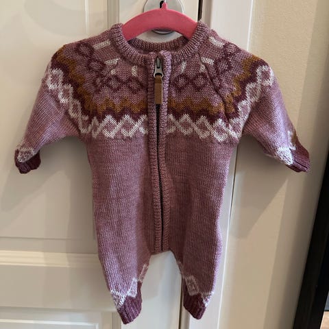Nydelig ulldress fra Name it i 100% merinoull. Størrelse 56. Pent brukt fra nyfødt til ca 2 mnd