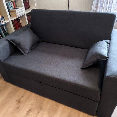 Veldig behagelig å ligge på (uten at den noen sinne har blitt sovet på) og perfekt som en barnesofa/ekstra soveplass eller sovesofa på hjemmekontor/gjesterom eller på barnerom.