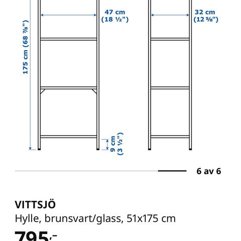 Hylle med tre glassplater selges. Passer ikke med ny innredning.