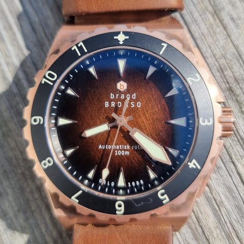 Selger en Bragdur Polheim i bronse, nummer 74 av kun 220 produserte. Klokken er kjøpt ny av meg 11.02.2025 og har derfor kun hatt 1 eier. Den fremstår som svært pent brukt / tilnærmet som ny.