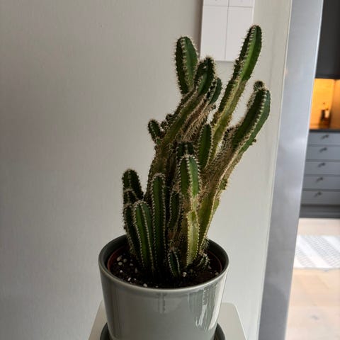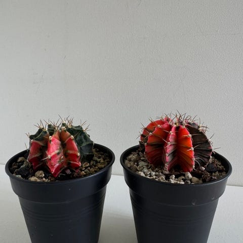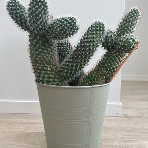 Kaktus stiklinger ulike former og størrelser. Plantene har grønne og delvis varierte (grønn/hvite) skudd med torner langs kantene. Leveres i potte med jord, klare for videre dyrking. Trives lyst og med sparsom vanning mellom tørkeperioder.