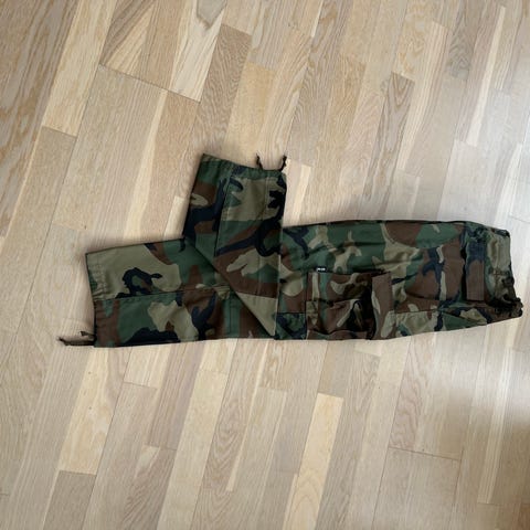 Mil-Tec kamuflasje sett med jakke og bukse i flerfarget mønster for barn, unisex, størrelse 140. Sett i militærinspirert stil med kamuflasjemønster. Jakken har knepping foran og krage, og buksen har rette ben. Egnet som fritidsklær, til lek ute eller temabaserte aktiviteter der kamuflasjemønster er ønsket.