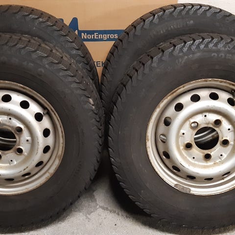 Til en gammel Mercedes. Selges komplett. Total diameter ytre mål 39 cm. Diameter indre mål fra topp til topp kurve inn i felg er 33,5 cm..