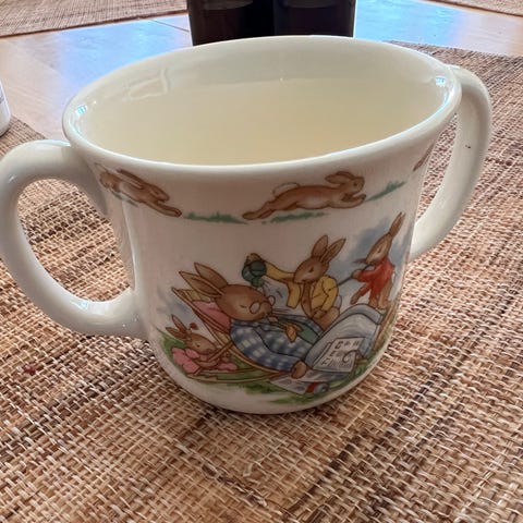 Royal Doulton – The Snowman Gift Collection, motivet heter “Building the Snowman”. Den er laget i bone china i England rundt 1985, basert på historien The Snowman av Raymond Briggs.