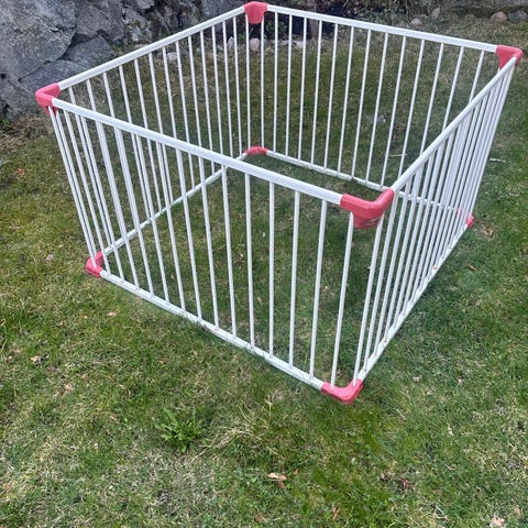 Akkuratt plass til babygym oppi grinden. Den ene skruen som holder sammen to sider får jeg ikke til å skru helt inn eller ut.
