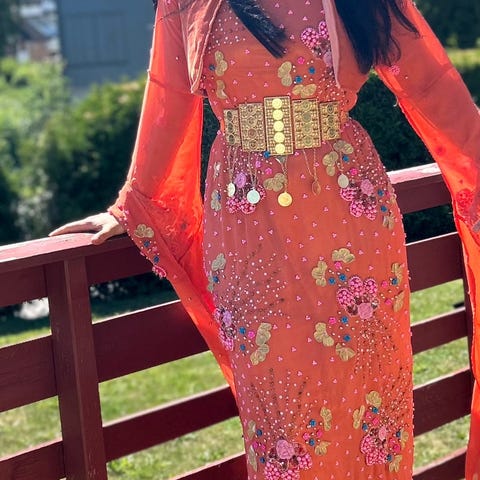 Nydelig å ha på - Silke og rayon som er deilig og sval på huden. En fest av farger! Jeg er 170 og den er helt fotsid.
