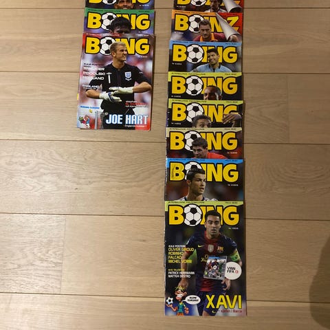 Samling med Kickerz fotballhefter og flere andre fotballrelaterte bøker. Inneholder ulike utgaver av Kickerz med portretter av kjente fotballspillere på forsiden, samt minst to enkeltstående barnebøker om fotball. Heftene og bøkene er på trykt papir og egner seg for barn og unge som er interessert i fotball og fotballprofiler. Antall titler og eksakte utgaver fremgår av bildene.