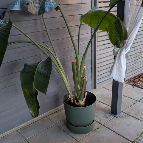 Strelitzia nicolai potteplante i stor størrelse.