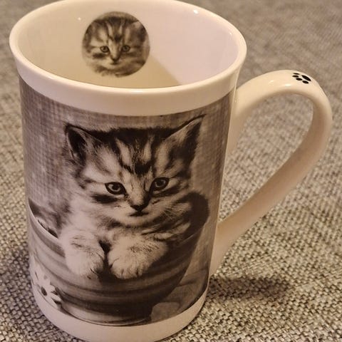 Søkeord krus kopp katt kattekrus schou kaffekopp tekrus porselen keramikk hvit kattemotiv søt kaffekopp kaffe te drikkekopp kjøkkenutstyr interiør gave katteelsker katteglad kattedilla minimalistisk strektegning design kjøkken samleobjekt kopp med katt kopp med motiv dekorasjon borddekking servise hvit kopp morgenkaffe kveldsmat gjenbruk bruktfunn smågave bursdagsgave presang kjøkkeninteriør hjemmeinnredning retrostil moderne stil enkel dekor kaffekopp til kattelsker drinkware mug cu