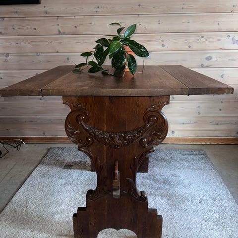 Gammelt sidebord med vakre utskjæringer